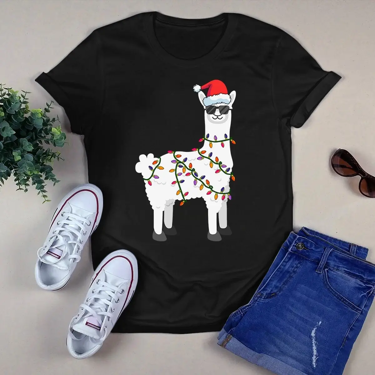 Funny Alpaca Llama Santa Hat Christmas Xmas Light Gift Tshirt