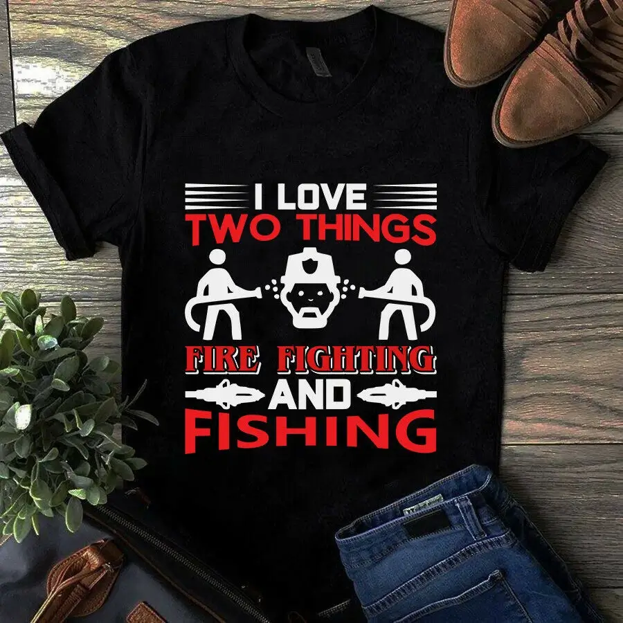 I Love Two Things Fire Fighting And Fishing Firefighter Tshirt
