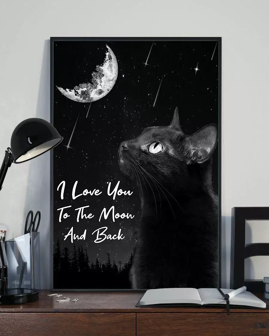 I Love You To The Moon And Back Lunar Moon Black Cat Poster