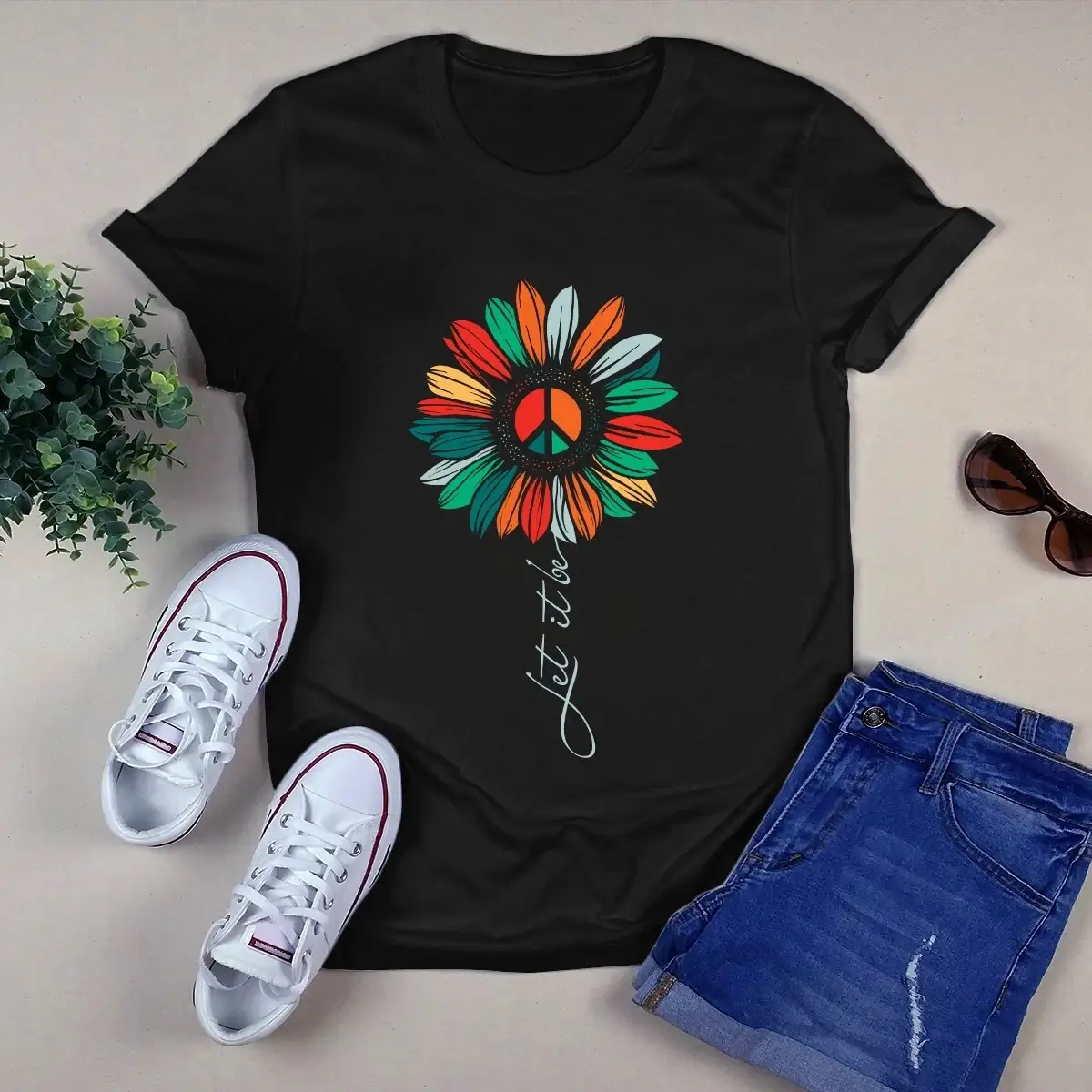 Let It Be Sunflower Hippie Retro Peace Sunflower Tshirt