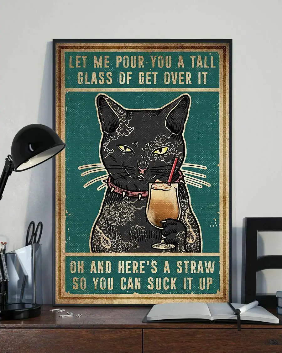Let Me Pour You A Tall Glass Of Get Over It Oh And Here’s A Straw Cat Poster