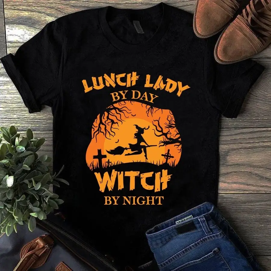 Lunch Lady By Day Witch By Night Halloween Pumpkin Tshirt