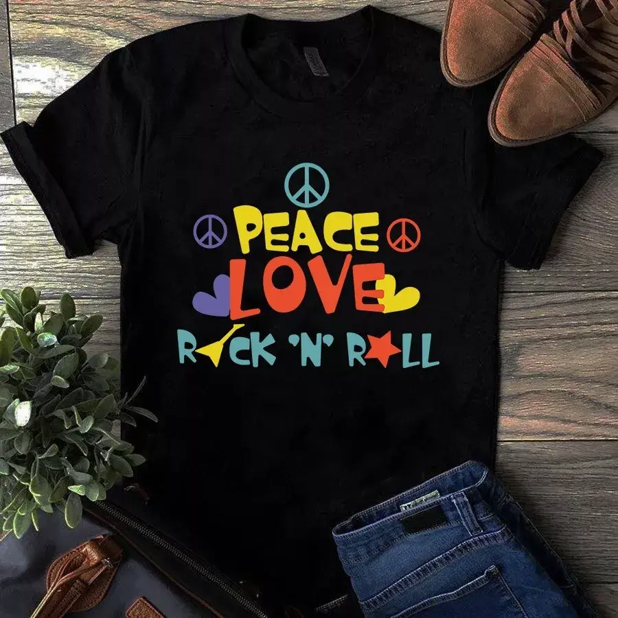 Peace Love Rock N Roll Hippie Vintage Retro Tshirt